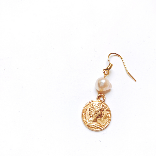 Antique coin print with pink natural freshwater pearls Earring 14k gold filled