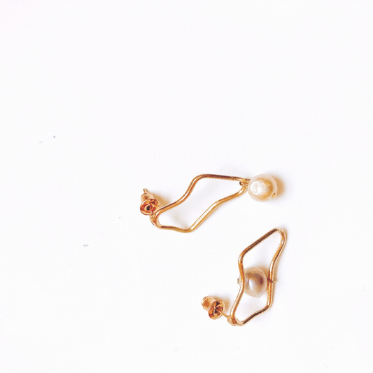 Asymmetric, minimalistic earring with natural freshwater pearls