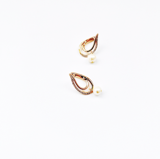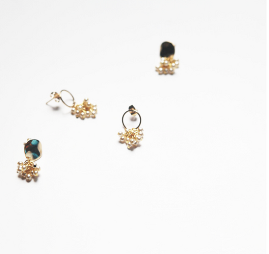 Asymmetric, minimalistic earring with natural freshwater pearls
