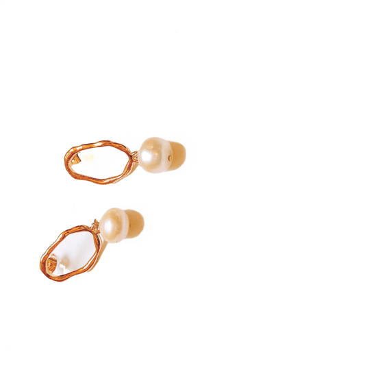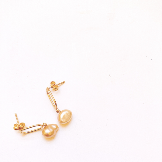 Flat Baroque Natural Pearl Earring, 14k gold filled